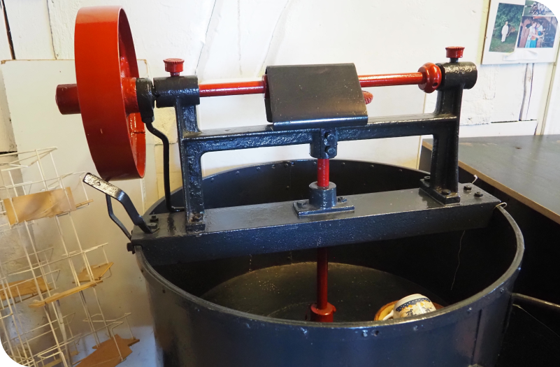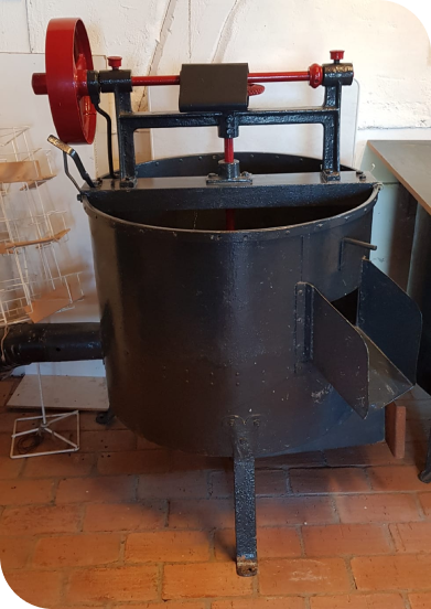 Im Wärmeofen wurden die Samen getrocknet, da es für das Pressen wichtig war, dass die Masse möglichst wenig Wasser enthielt. Anschließend wurden sie im Rührkessel unter ständigem Rühren erhitzt. Dabei wurden die Samen aufgeschlossen und es entstand eine Maische. Das sich ständig drehende Rührwerk verhinderte hierbei ein Anbrennen des Pressgutes und sorgt für eine gleichmäßige Erwärmung.